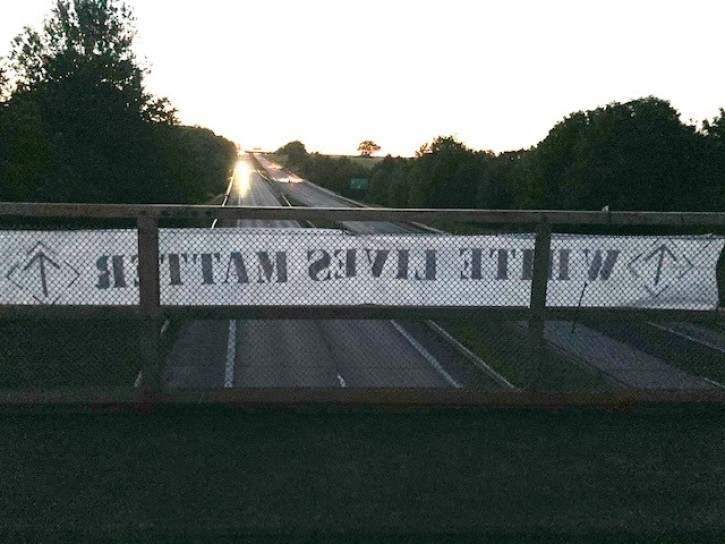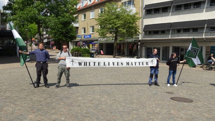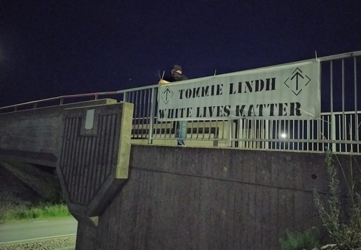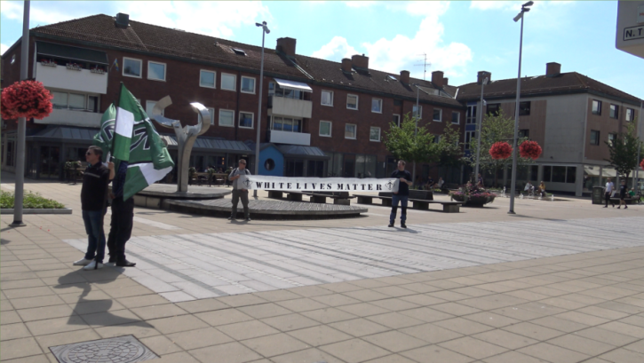 Basaktivism har genomförts i Näste 8, där man har satt upp affischer på temat ”White Lives Matter”.