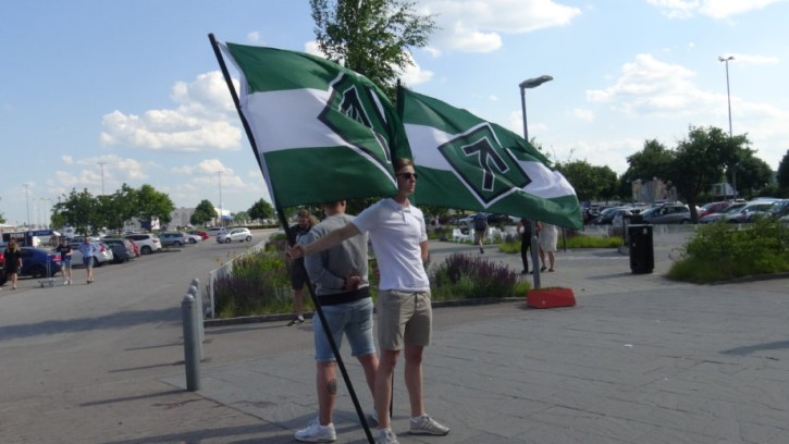 Fanbärare utanför IKEA i Linköping
