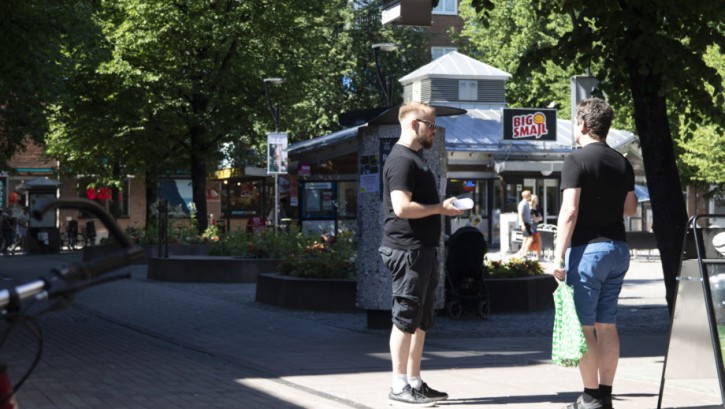 På lördagen genomfördes en offentlig flygbladsutdelning i Skellefteå. Dagen till ära hade det tropiska vädret avtagit och det var en behaglig temperatur i den västerbottniska staden. De medhavda flygbladen gick åt i en snabb takt och budskapet mottogs i de flesta fall positivt.