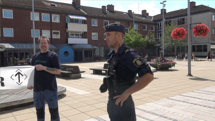 På plats i Ljungby började man dela ut flygblad och ställa upp med banderoll med texten ”White Lives Matter”. Efter ungefär en timme dök polisen upp för att ställa några frågor till motståndsmännen. Oturligt nog för polisen visste ingen av motståndsmännen svaren på dessa frågor.