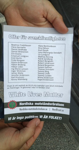 Under lördagen sammanstrålade aktivister i för att dela ut flygblad om svenskfientlighetens offer i centrala Stockholm under temat ”White lives matter”.