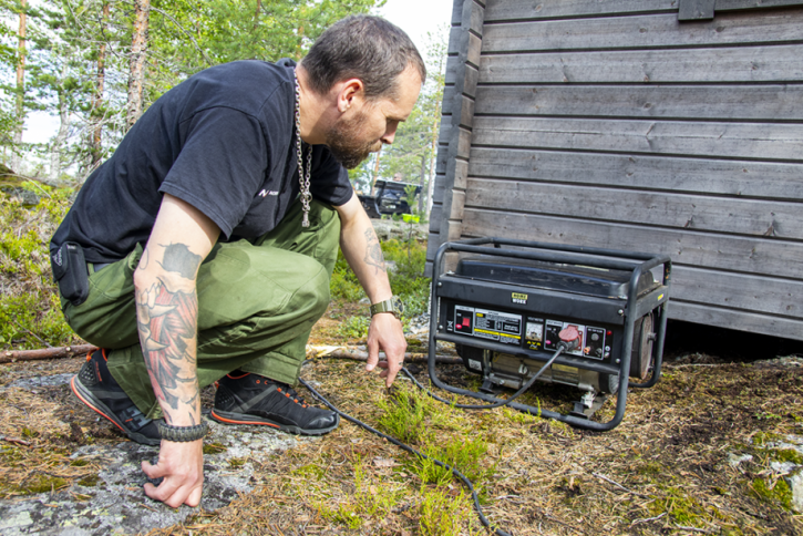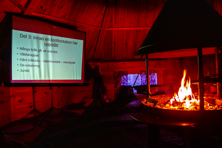 Uppe vid detta klapperstensfält finns även en liten grillstuga där det planerades att Martin Saxlind skulle hålla ett föredrag om självförsvar. Problemet är bara att det inte finns någon ström där ute vilket kampgruppen enkelt löste genom att medföra ett nyinköpt elverk. Efter lite donande med detta och annan elektronisk utrustning var det så dags för Martin att hålla sitt föredrag.