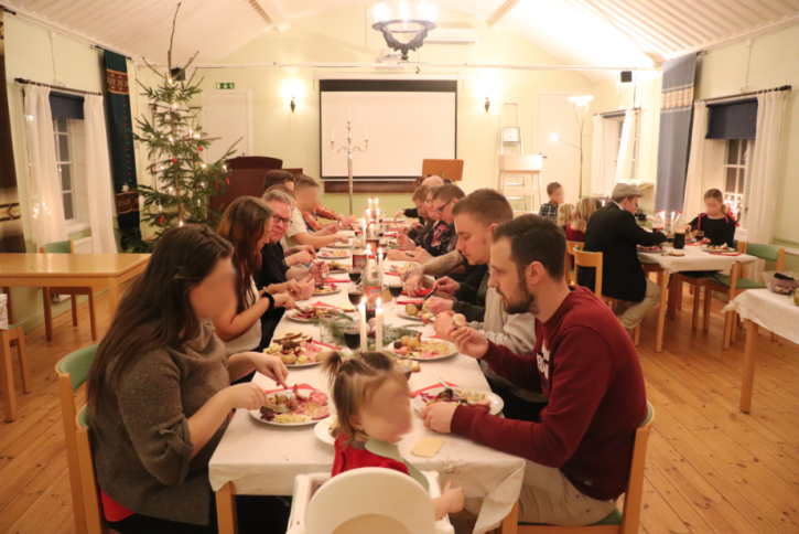Arrangörsgruppen startade redan tidigt denna gråa och regniga dag förberedelserna för eftermiddagens julbord och barnaktiviteter.