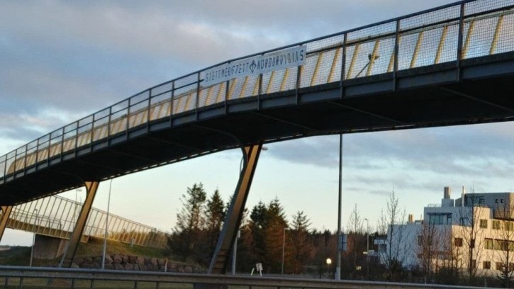 17:30: Näste 7 kör en banderollaktion på en gångbro.