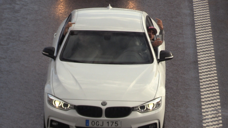 Två rasfrämlingar i en BMW kom körandes från motsatt håll, tutandes, för att sedan stanna mitt i vägen för att kunna skrika obsceniteter ut genom rutorna. En relativt vanlig reaktion från de mindre begåvade som uppehåller sig på nordisk mark. Bilen fortsatte strax bort ifrån bron, bara för att vid ett rödljus göra en u-sväng, för att sedan från ca 50 meters håll från bron stanna helt i körfältet, för att kunna fortsätta skrika. De dåligt uttalade ”orden” som kom ur rasfrämlingarnas munnar, var lika uttjatade som rödingarnas ramsor, som de använt sig av i årtionden, utan något som helst resultat. Det var ”knolla hit”, och ”knolla dit”, tills bilisterna bakom främlingarnas bil tutat så pass mycket, att deras bil äntligen började rulla igen. När de passerade under bron fick de en present tappad på sin vindruta.