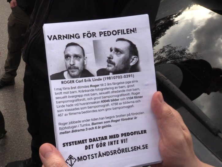 Anledningen var att Motståndsrörelsen känner som en del i sin plikt för folket, att slå vakt om och kämpa för barnens bästa. I Uttran bor nämligen en pedofil som förra året dömdes till fängelse för övergrepp mot 12 olika barn i åldrarna 3-6 år. Det var barnen vid förskolan Björkstugan i Tumba, där pedofilen för tillfället arbetade, som han utnyttjade för sina sjuka fantasier. Grovt sexuellt övergrepp mot barn, sexuellt ofredande, barnpornografibrott med mera lyder åtalspunkterna från rättegången.