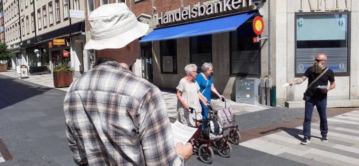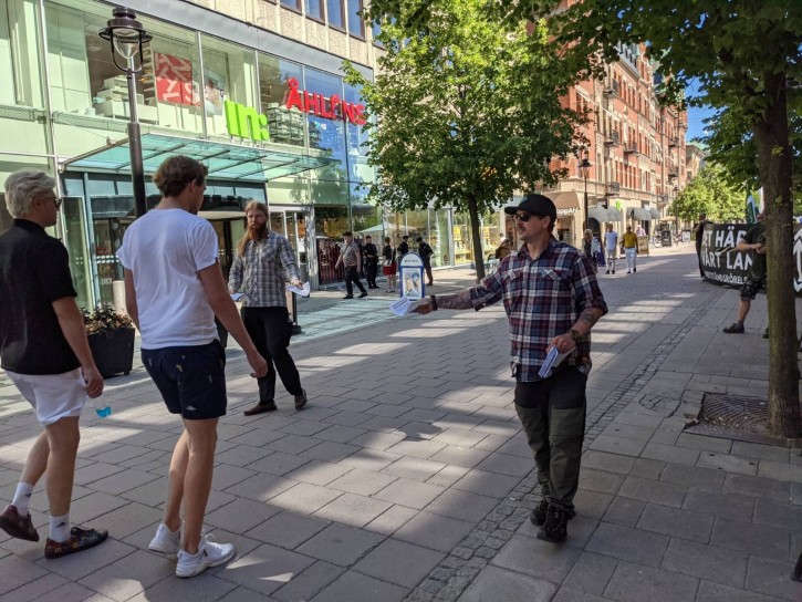 14:45. Aktiviteten i Västerås är avslutad. Motståndsmännen rapporterar att dagen varit lyckad med många givande diskussioner även om det varma vädret bidrog till färre lördagsflanörer än vanligt.