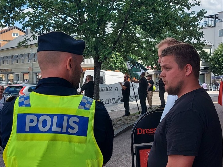 16:05. Aktiviteten i Härnösand är nu avslutad. Motståndsmännen på plats rapporterar att man kunde genomföra aktiviteten som planerat utan större störningar från polisens sida.