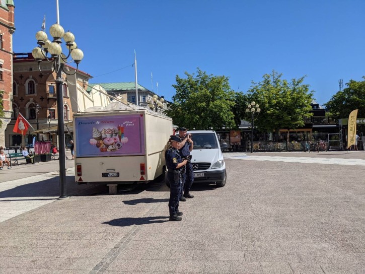 11:50. Polisen har tagit sig ut till Lilltorget i Vetlanda. Att hålla koll på vita människor som organiserat står upp mot vårat korrupta system verkar vara en prioritet för Polisen.