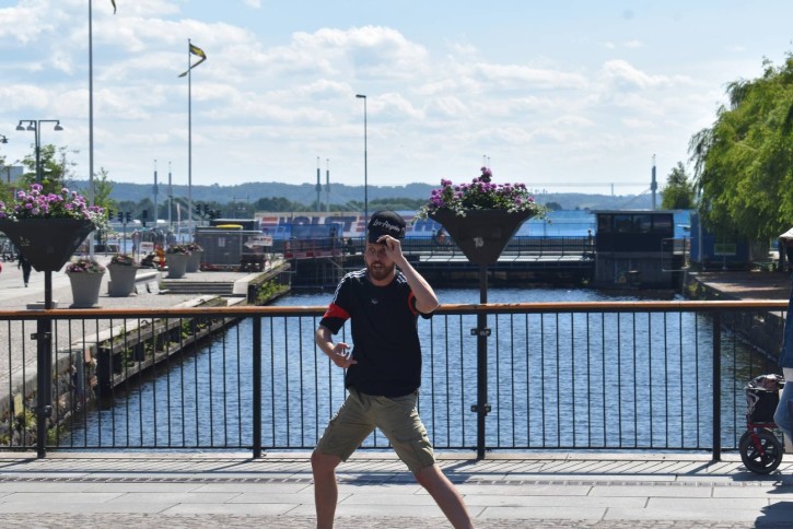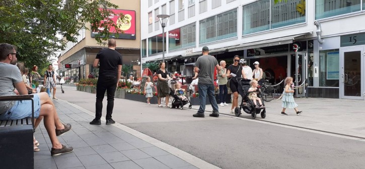 12:50. Näste 4 och Näste 6 ställer upp med banderoll i centrala Sundsvall. David Nilsson håller tal till Sundsvallsborna.