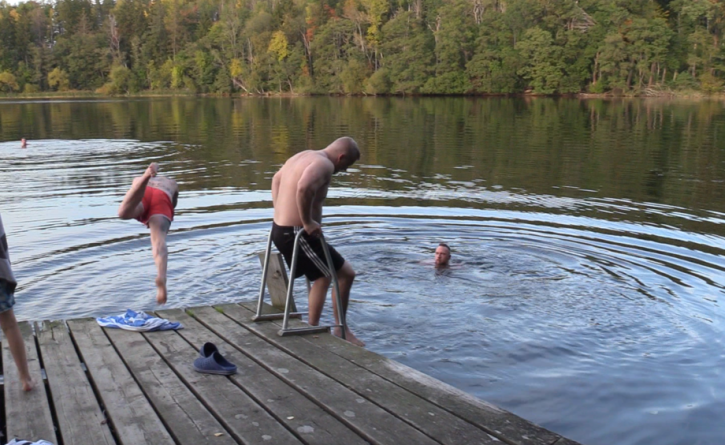 Några kamrater som av olika anledningar inte deltog på träningen hade påpassligt dragit igång värmen i en bastu som hunnit bli lagom varm tills träningspasset var avslutat, varför man nu begav sig ned till en sjö för att med höstbad och bastu återhämta sig medan ytterligare andra färdigställde den stundande middagen som bestod av hemmagjord potatisgratäng och kött. Till middagen slöt också en del utomstående sympatisörer upp.