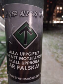 På bron ovanför Riksväg 73 möttes man denna dag runt lunchtid för att ha en längre broaktion och även om det var lördag så var det packat med bilar redan innan man ens kom dit. Motståndsrörelsen har blivit ett så vanligt inslag i gatubilden i Stockholm så att kamraterna hann varken rulla ut banderollen eller veckla ut någon av fanorna innan bilisterna började tuta – då de visste precis vad som väntade!