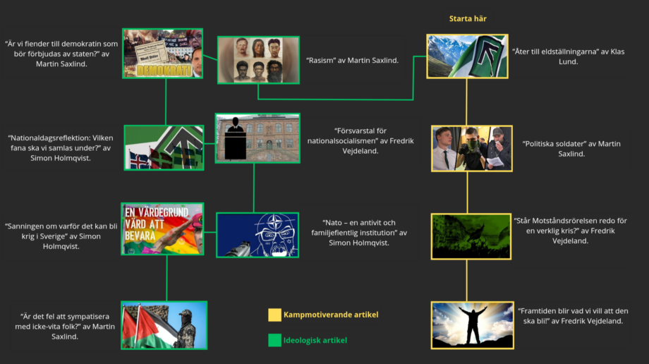 Jag har därför valt ut elva artiklar från fyra olika författare, indelade i två kategorier och gjorda för att läsas i en specifik ordning. Dessa syftar till att på ett så enkelt och lättförståeligt sätt som möjligt ge den kunskapsmässiga bredd som krävs för att förstå Nordiska motståndsrörelsen.