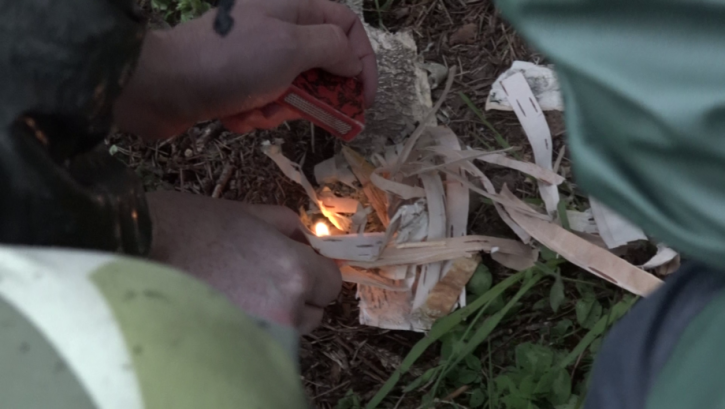 Efter varierande eldlycka från deltagarna och ungefär 200 gemensamt räknade armhävningar har samtliga deltagare gjort upp eld, och kan dricka vatten i en kortare paus innan man fortsätter vidare. Att få vandra igen är för stunden välkommet, då man under tiden man gjort upp eld har hunnit bli lite avkyld.