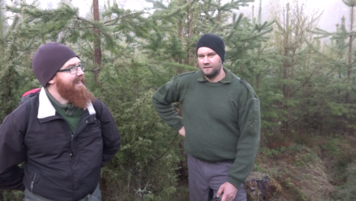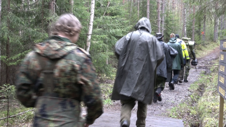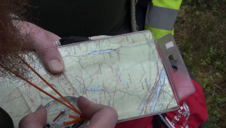 Strax före klockan 9 på morgonen har gruppen börjat sin vandring upp genom skogen, det är dags att lämna stigen och börja navigera genom skog och mark. Deltagaren som bär på den enda väldigt numera tunga ryggsäcken ansvarar också för navigering.