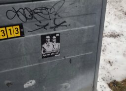 Klistermärkesuppsättning i Göteborg Kvällen 30 december sattes klistermärken upp vid Bananpiren eftersom mycket folk samlas där på Nyårsafton.