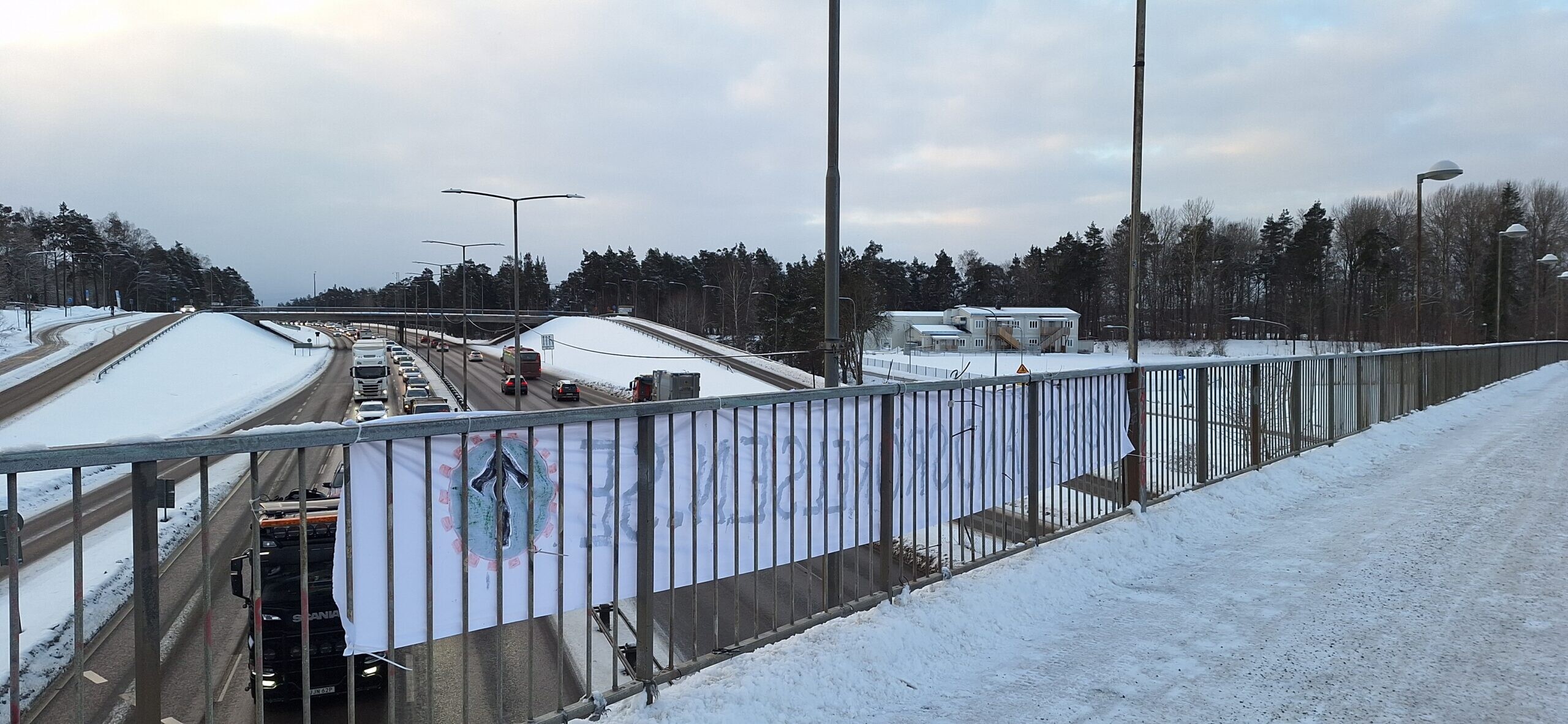 Banderollaktion i Stockholm Under måndagen den 2 februari sattes ett antal banderoller upp i Stockholmsområdet.