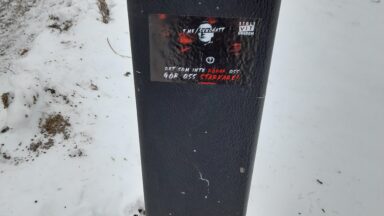 Klistermärken Kristinehamn Näste 5 har varit ute och satte upp klistermärken i olika delar av Kristinehamn.