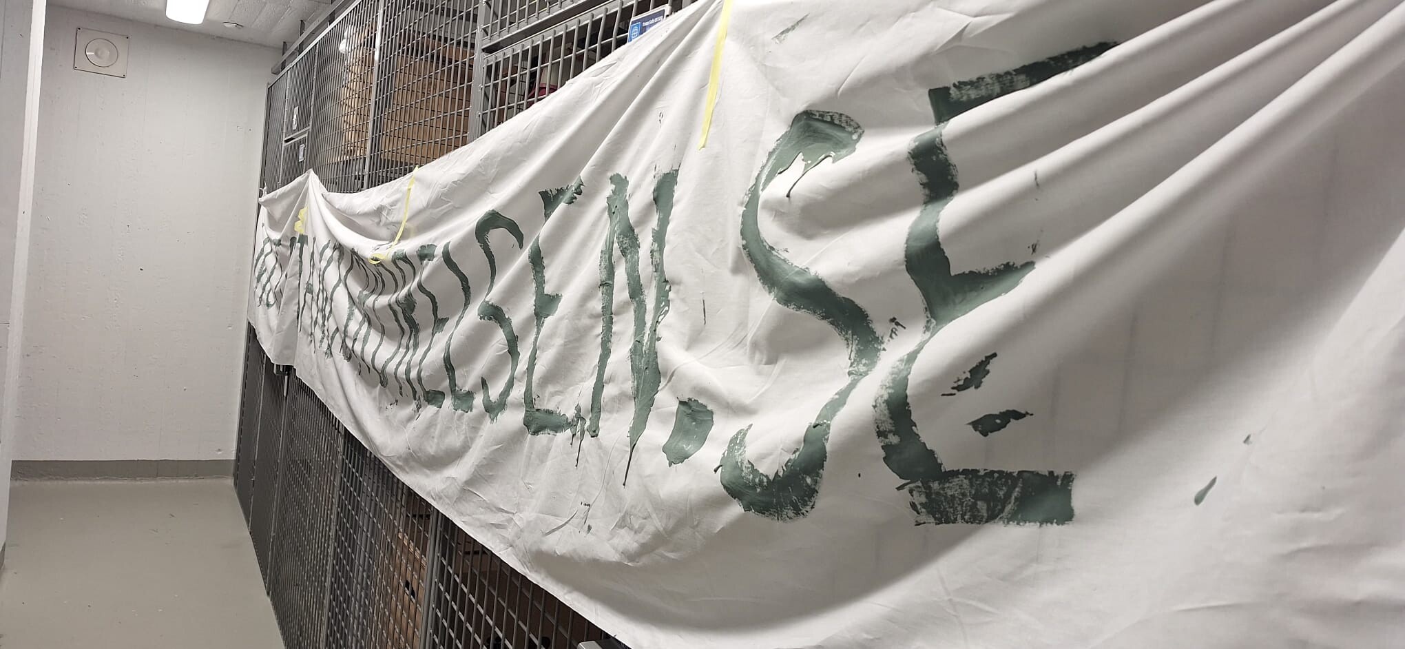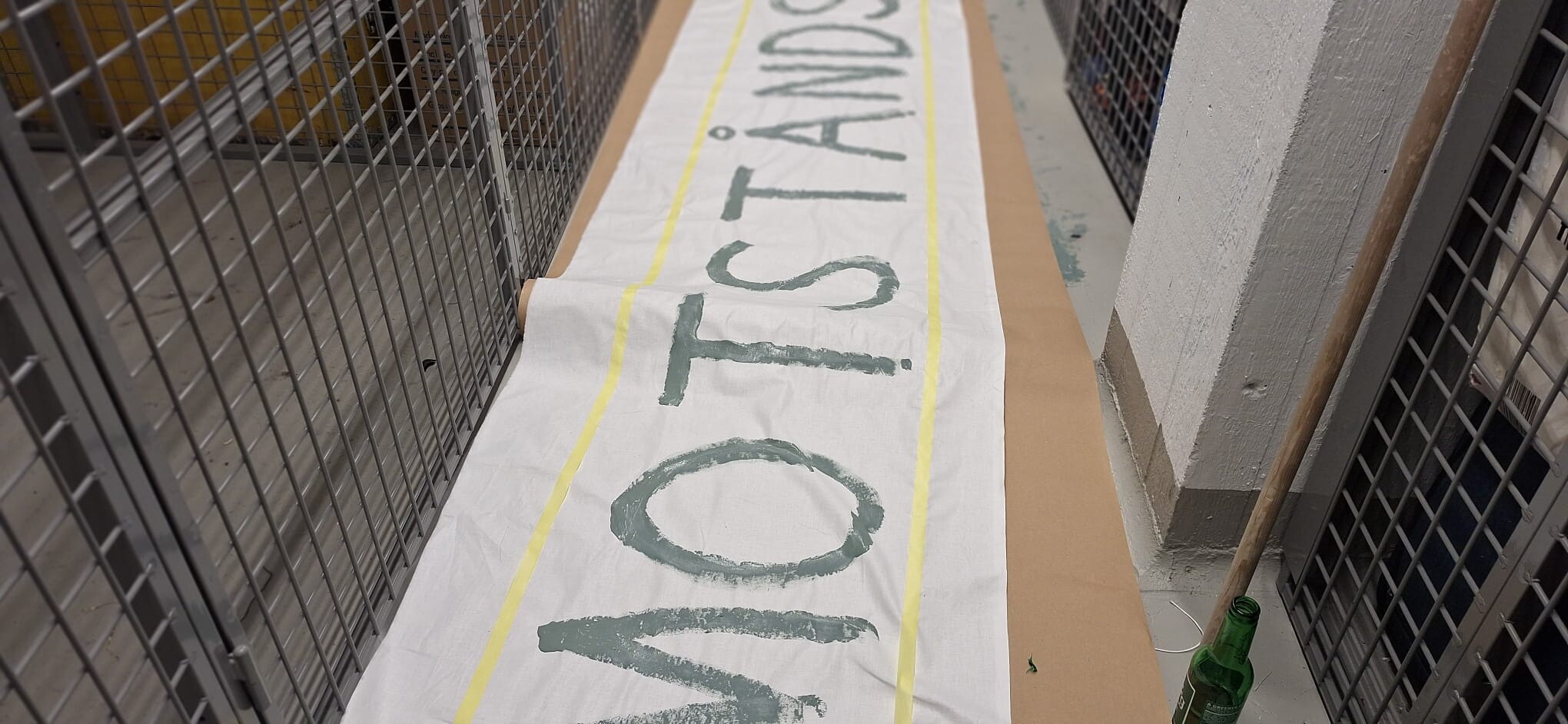Banderolltillverkning Stockholm Under fredagen den 30 januari tillverkades en sju meter lång banderoll med ordalydelsen: ”Motståndsrörelsen.se”.