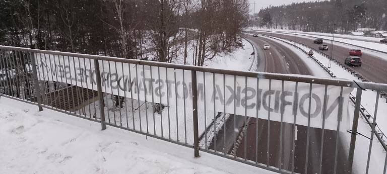 Banderoller uppsatta i Stockholm Den 25 januari sattes flera banderoller upp runt om i Stockholms kommun.