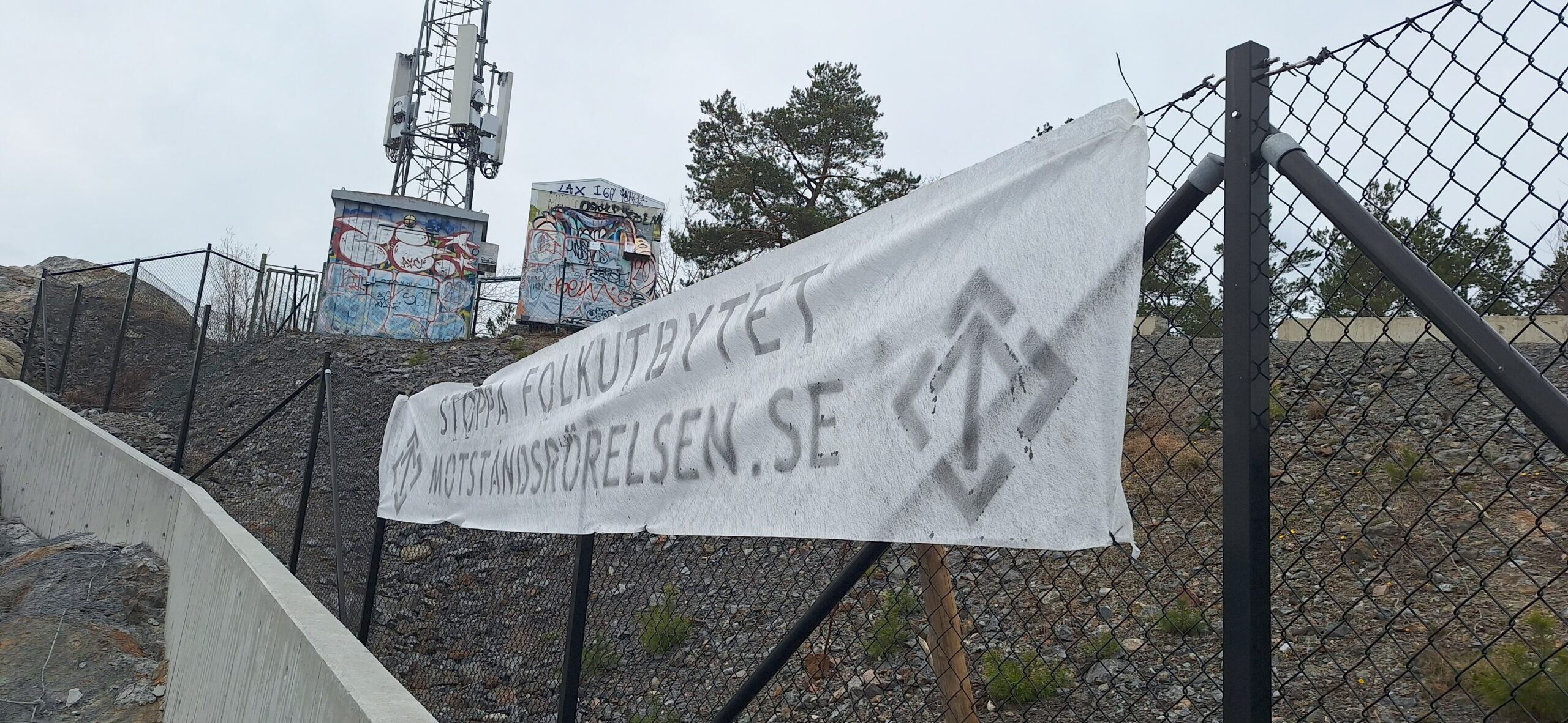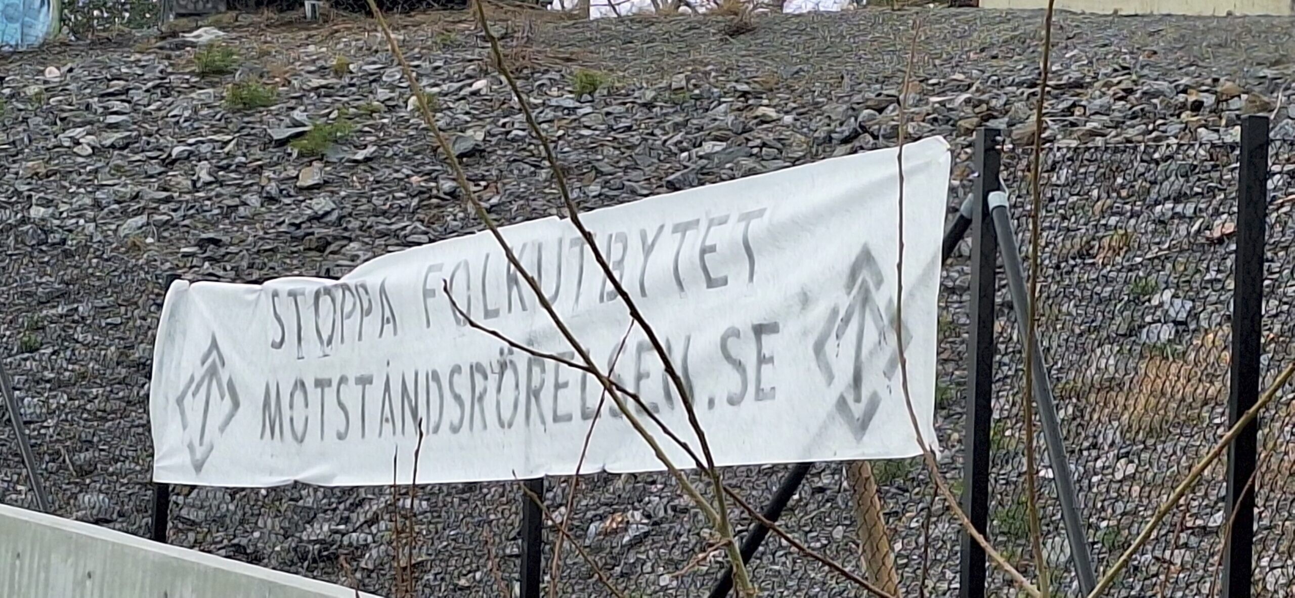 Torsdagen den 19 mars genomfördes banderolluppsättningar i Stockholm. Texten på banderollen bar texten ”Stoppa folkutbytet – Motståndsrörelsen.se”.