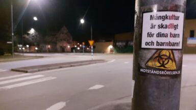 Basaktivism i Karlstad På långfredagen prydde lyktstolpar och elskåp med nationalsocialistisk propaganda.