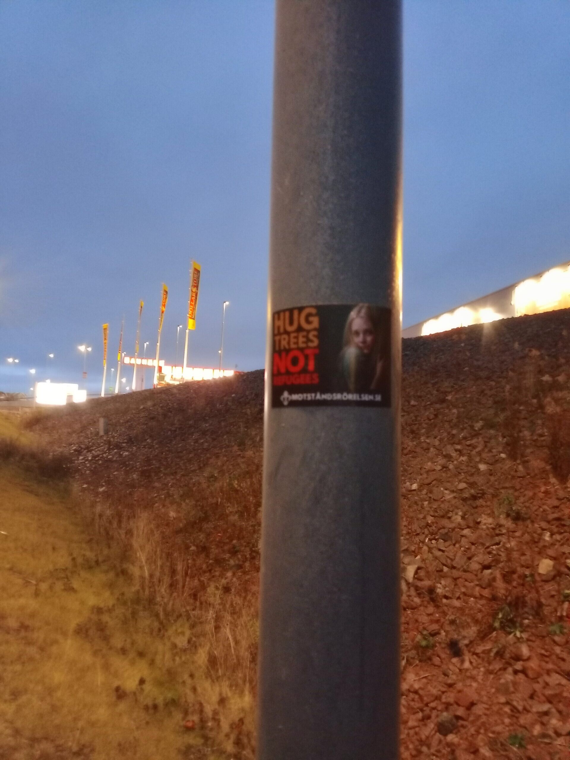 Klistermärken i Karlstad Lördagen den 18 oktober sattes det upp klistermärken i tätorten Skåre i Karlstad kommun.
