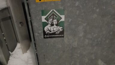 Klistermärken i Karlstad 2 januari var Näste 5 ute i vinterkylan och satte upp klistermärken i de centrala delarna av Karlstad.