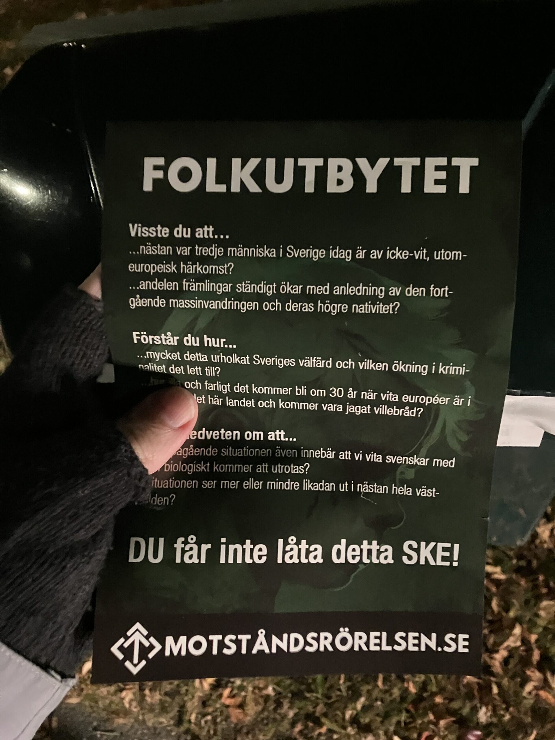 Den 16/10 delades det ut flygblad till hushåll i Norsjö.