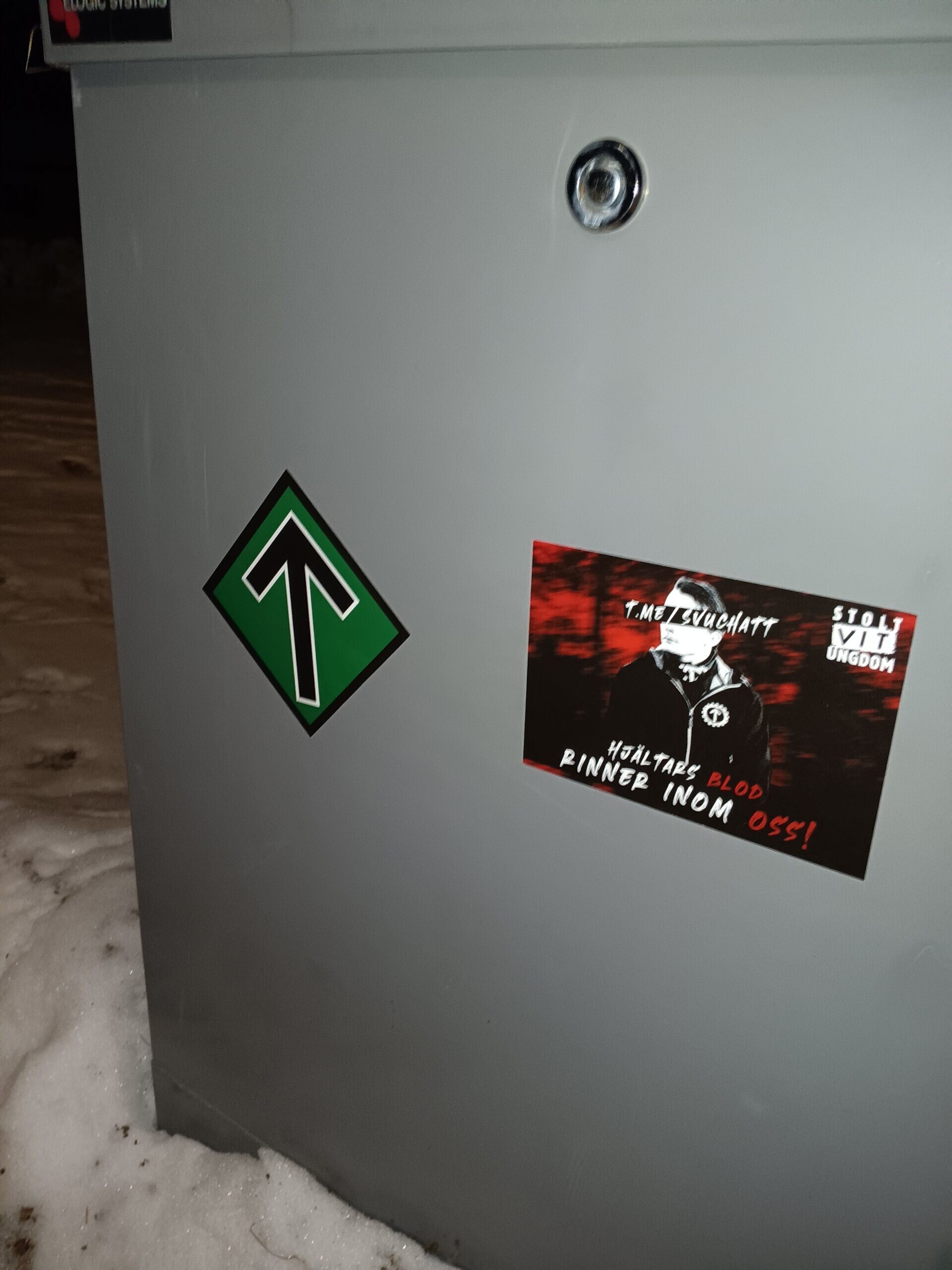Flygblad och klistermärken i Forshaga Under kvällen var medlemmar ur Näste 5 och delade ut flygblad och satte upp klistermärken i Forshaga.