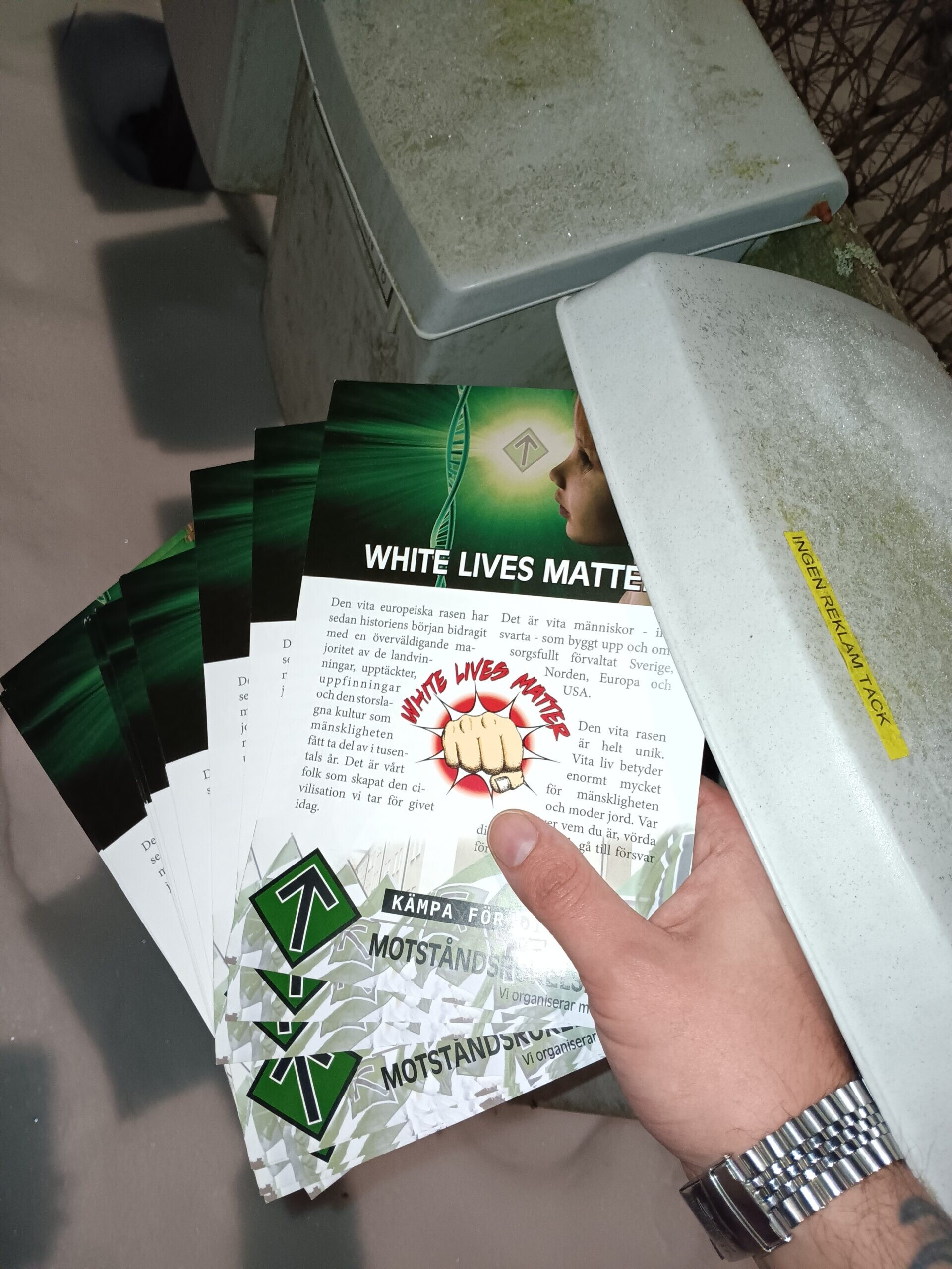Flygbladsutdelning och klistermärken i Björneborg Medlemmar i Näste 5 har delat ut flygblad och satt upp klistermärken i Björneborg, Kristinehamns kommun.