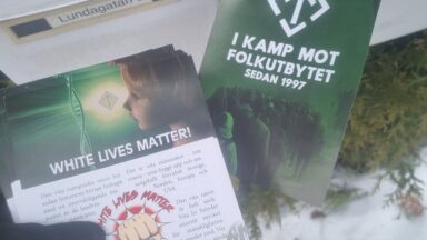 Flygblad och klistermärken i Forshaga Under kvällen var medlemmar ur Näste 5 och delade ut flygblad och satte upp klistermärken i Forshaga.