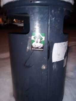 Klistermärkesuppsättning i Göteborg Kvällen 30 december sattes klistermärken upp vid Bananpiren eftersom mycket folk samlas där på Nyårsafton.