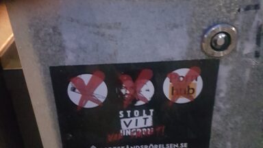 Klistermärken i Örebro Lördagen den 21 mars sattes det upp klistermärken på och omkring en skola i Örebro.
