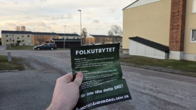 Flygblad i Storvik Måndagen den 6 april delade Kampgrupp 502 ut flygblad i Storvik, Sandviken kommun.
