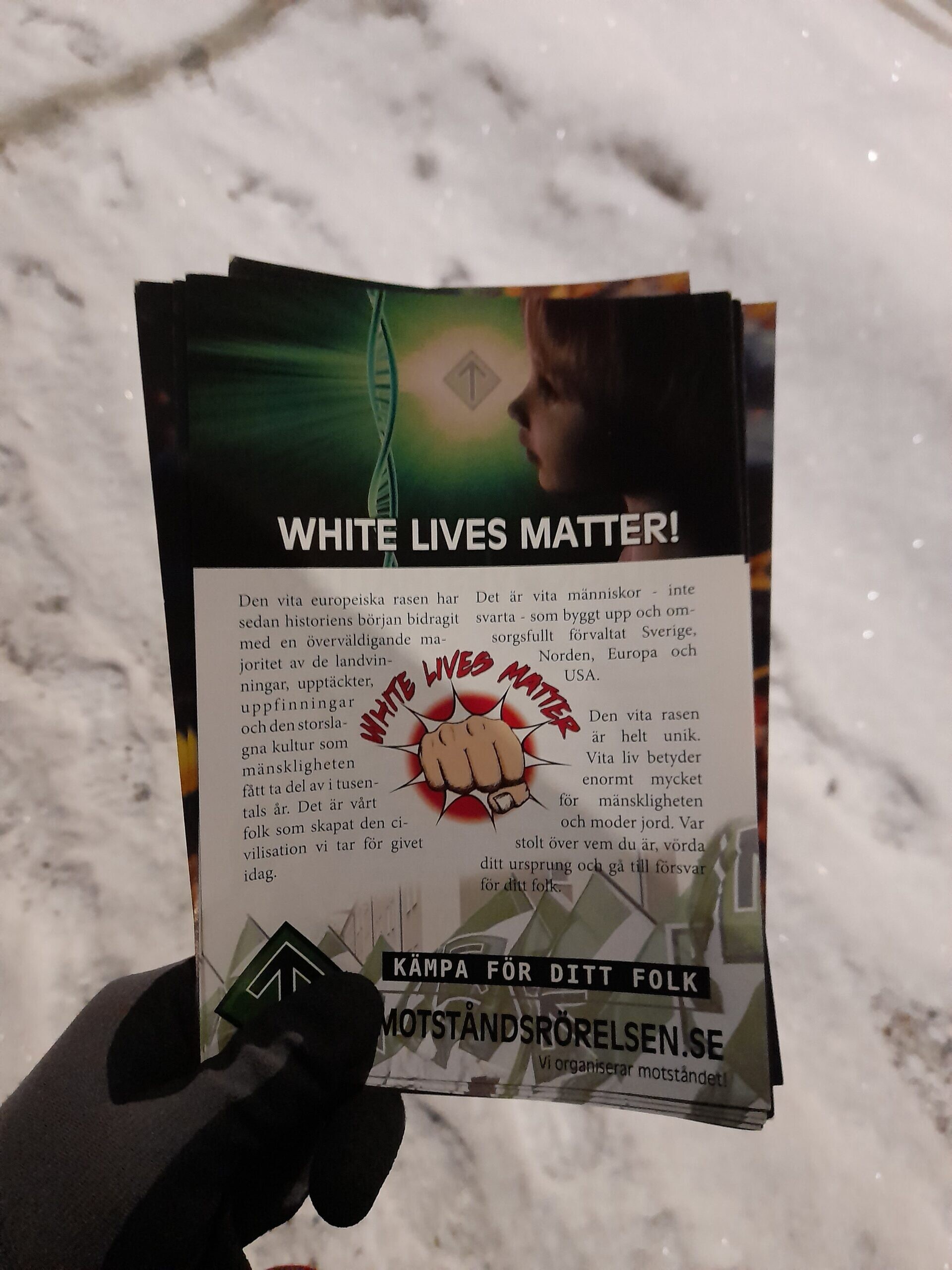 Flygbladsutdelning Kristinehamn Medlemmar från Näste 5 delade ut flygblad i Björneborg, Kristinehamn och satt även upp klistermärken längs vägen.