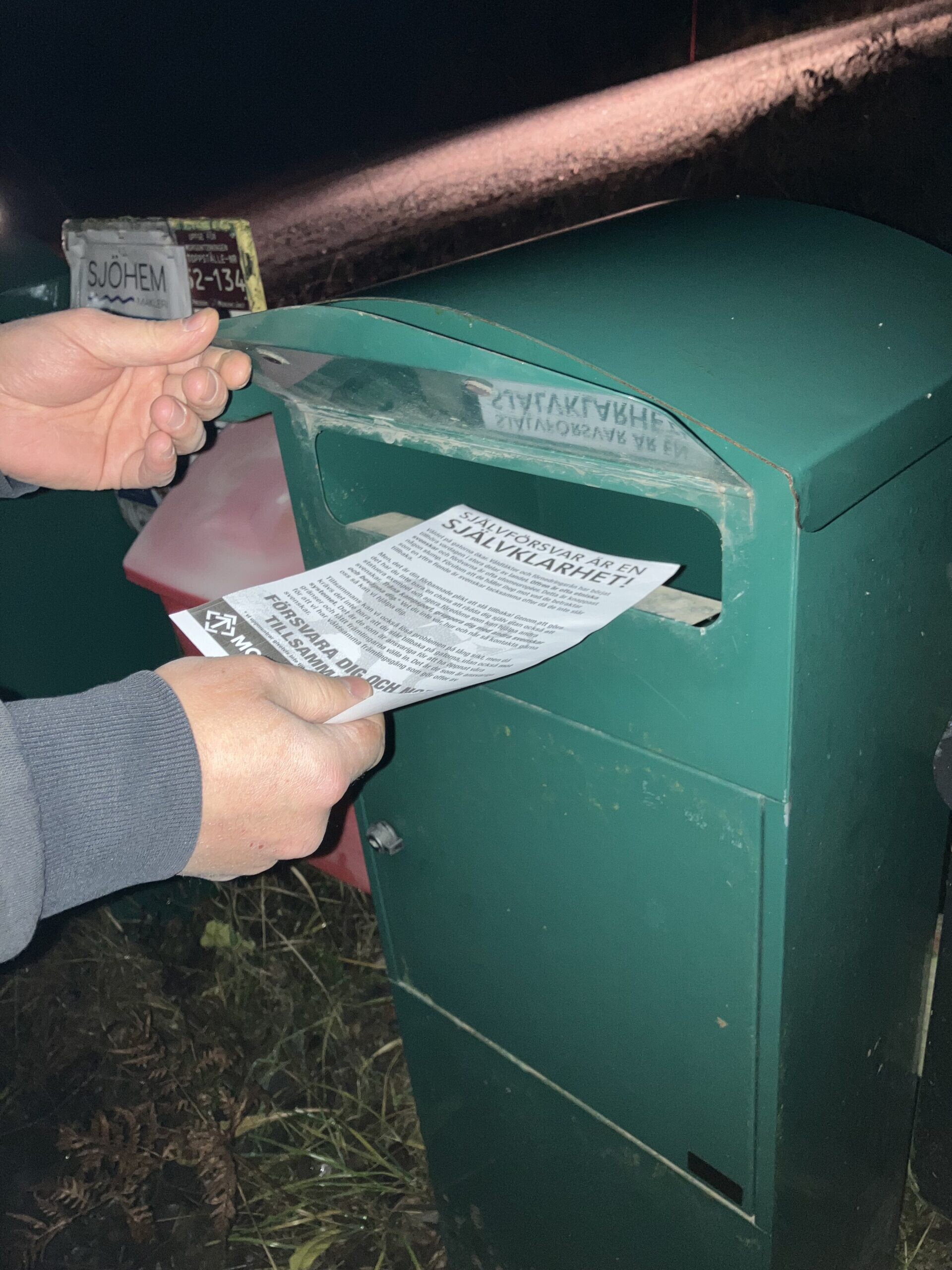 Flygblad delades ut på Värmdö i östra Stockholms skärgårdskommun.