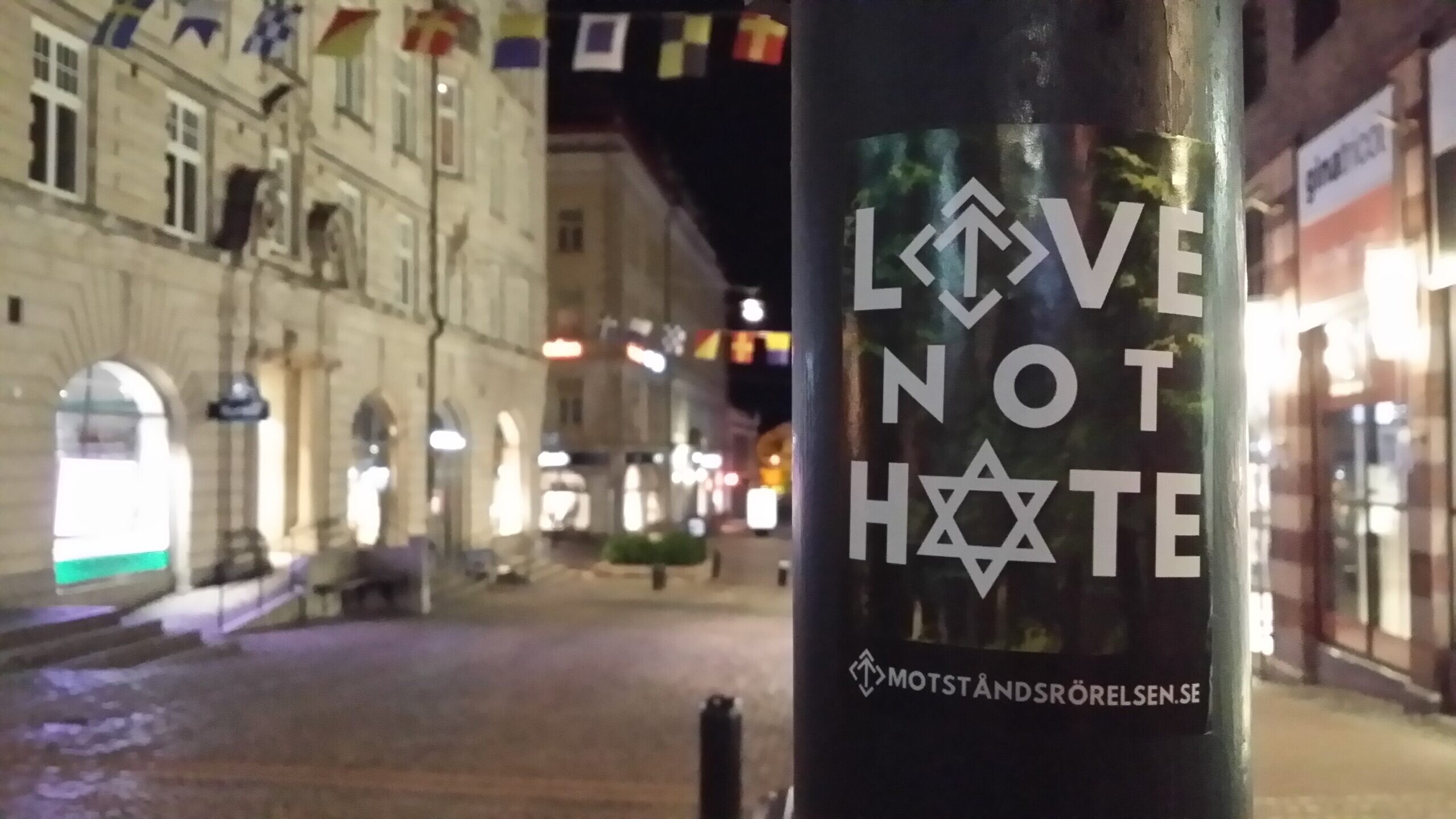 Under torsdagen sattes det upp klistermärken på Trossö.