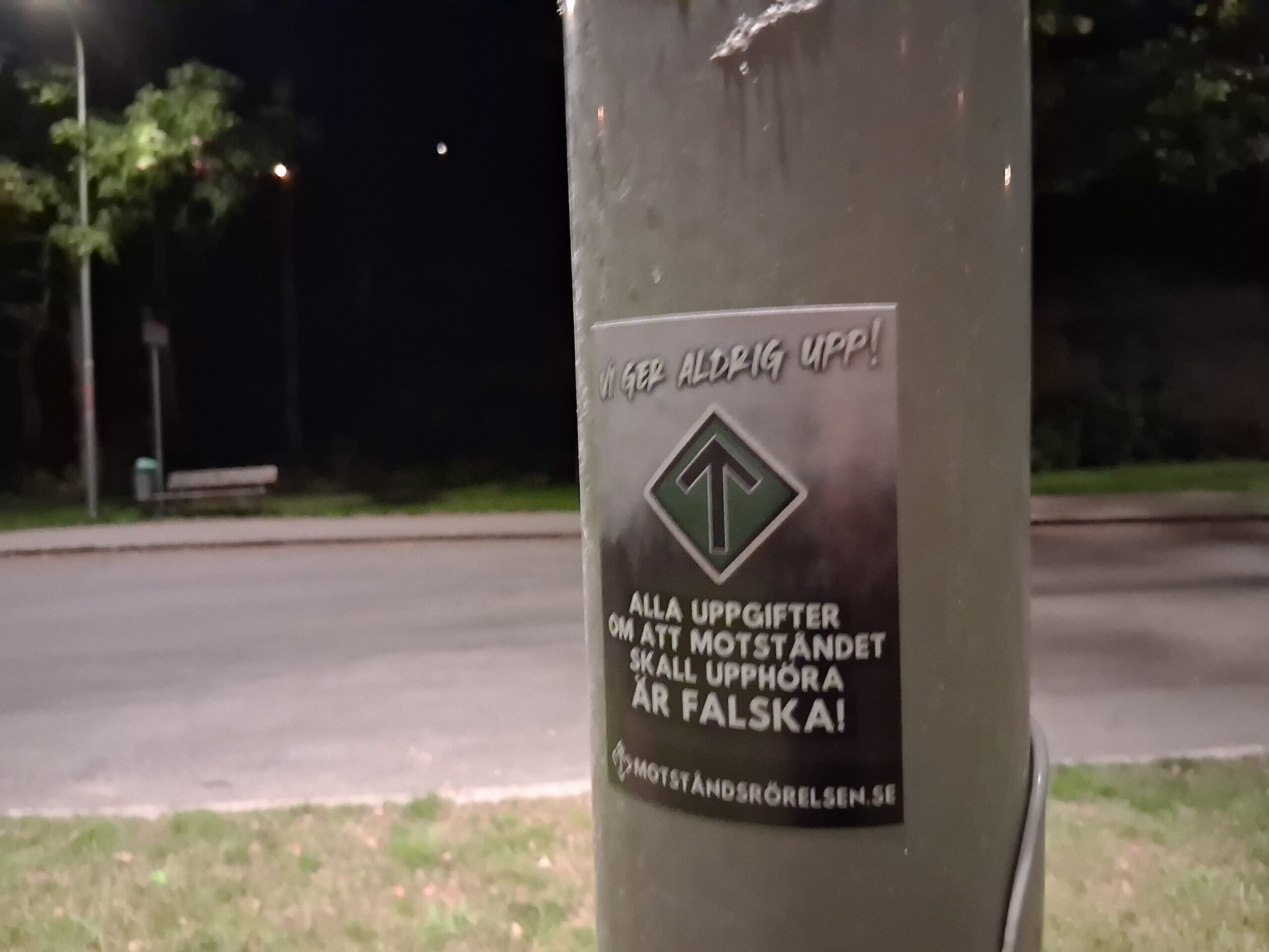 Klistermärken Norrtälje Den 1 oktober satte kamrater upp en större mängd klistermärken vid och runt Rodengymnasiet i Norrtälje.