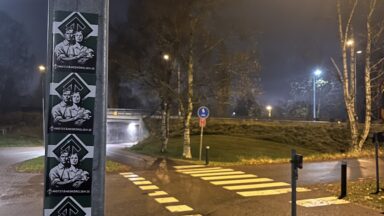 Klistermärken Karlstad Ett stort gäng klistermärken sattes upp runtom i Karlstad i början på november.