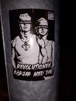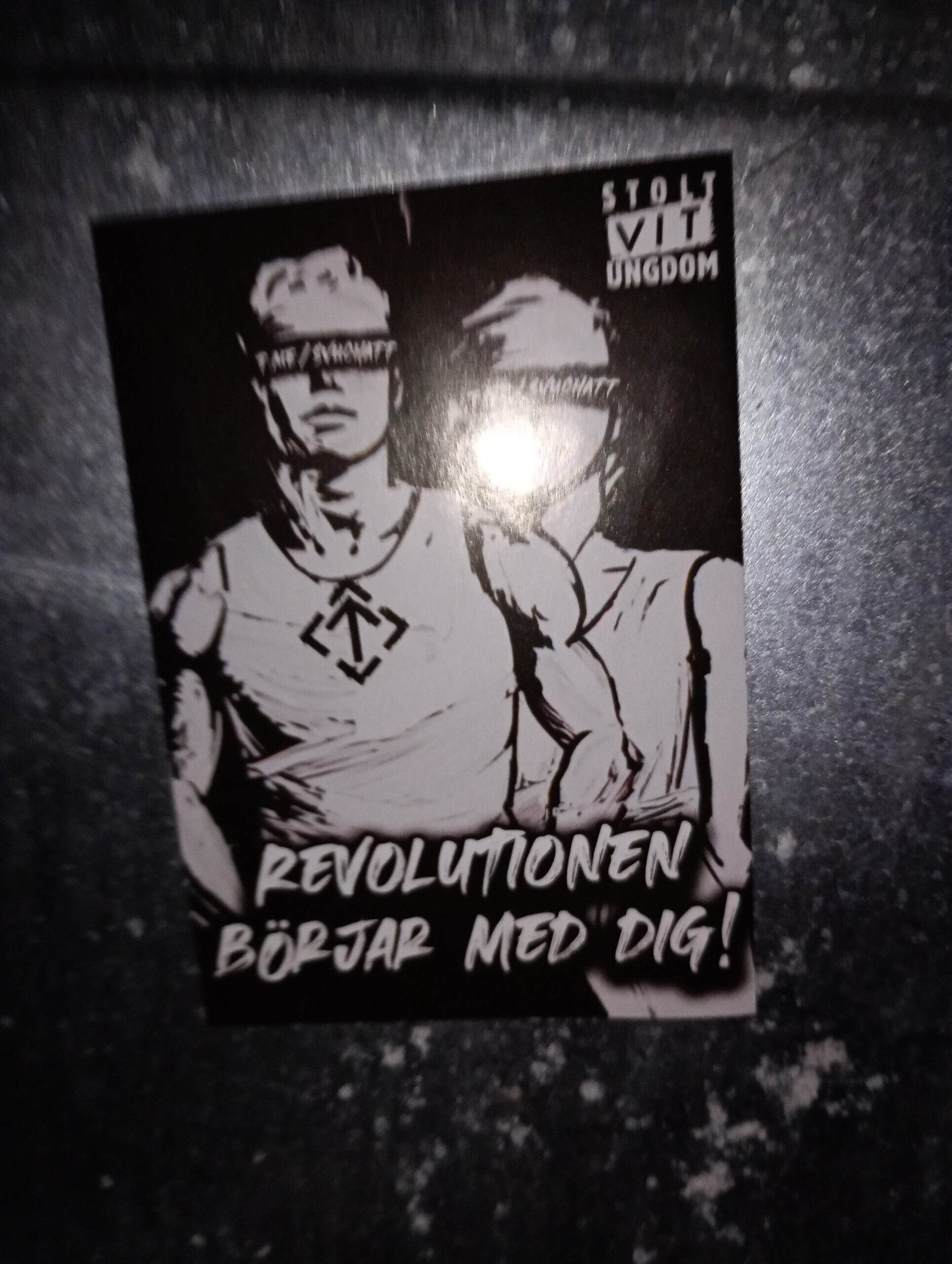 Klistermärken i Stockholm Den 19 december satte sympatisörer upp klistermärken i Rinkeby på platser där det trots allt fortfarande bor en del vita.