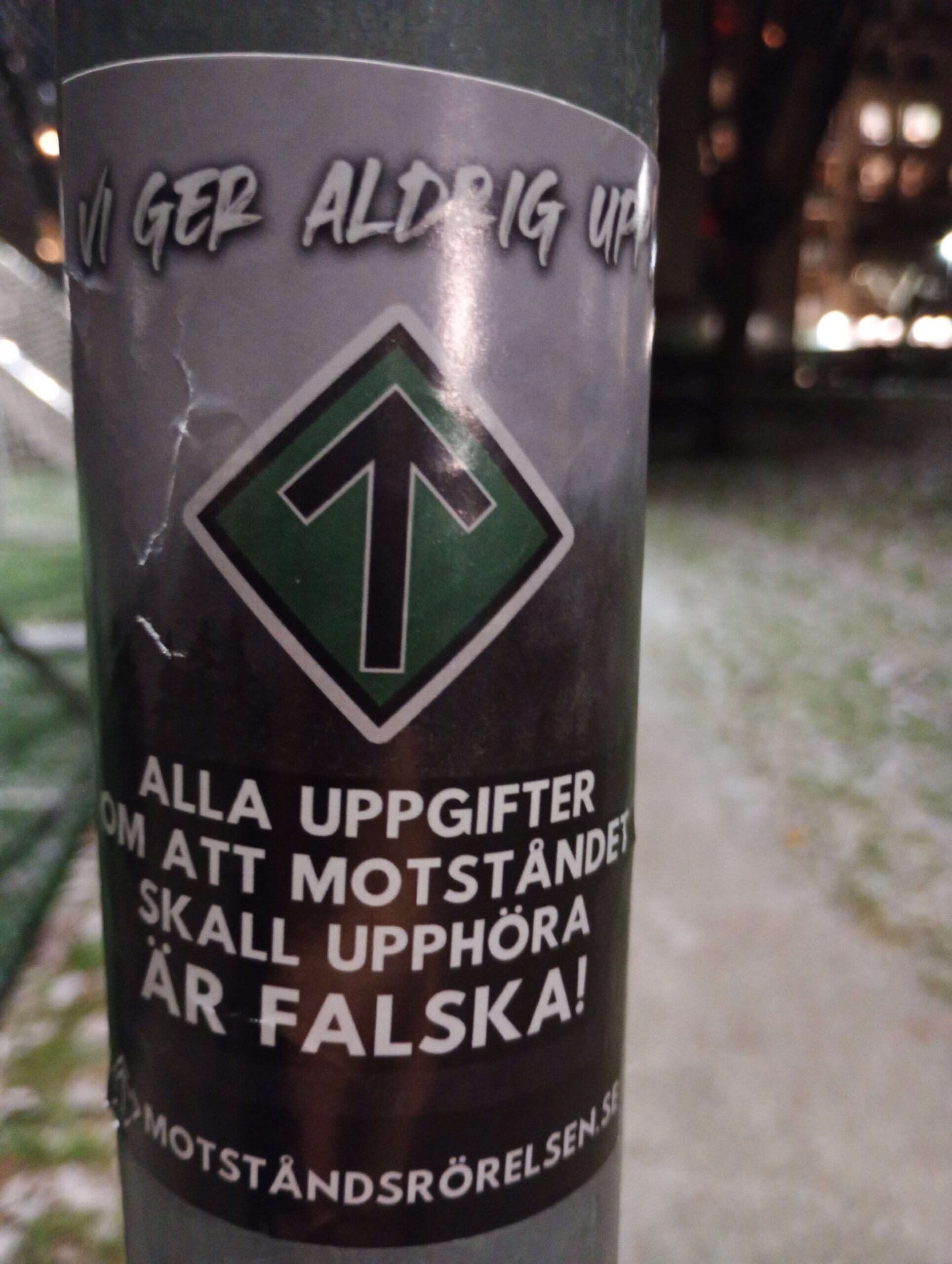 Klistermärken i Stockholm Den 17 december sattes klistermärken upp i Hässelby-Vällingby av sympatisörer.