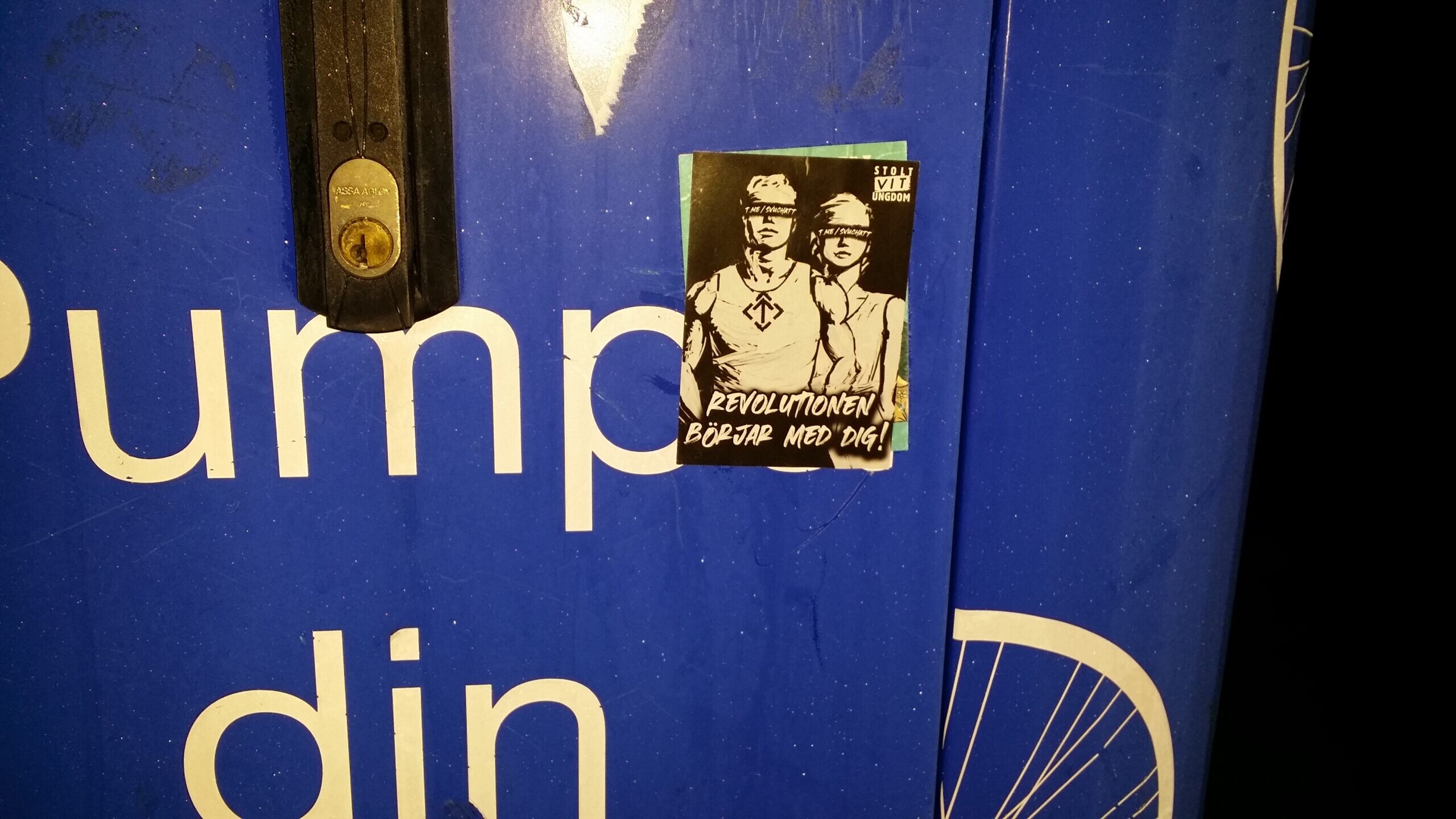 Under vecka 3 sattes det upp klistermärken runtom i Karlskrona.