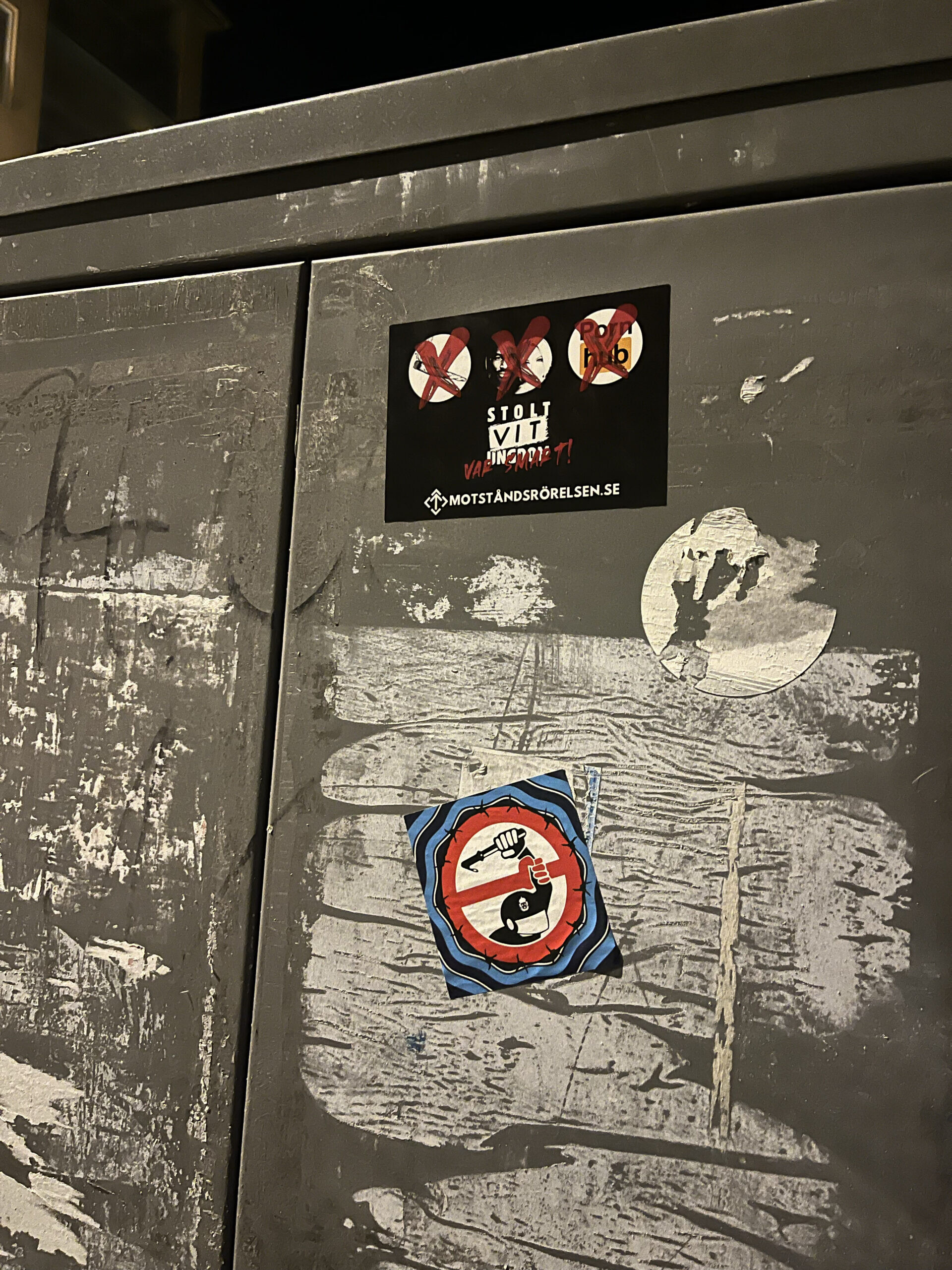 Aktivism Kristinehamn Näste 5 har satt upp klistermärken och delat ut flygblad i Björneborg, Kristinehamns kommun.