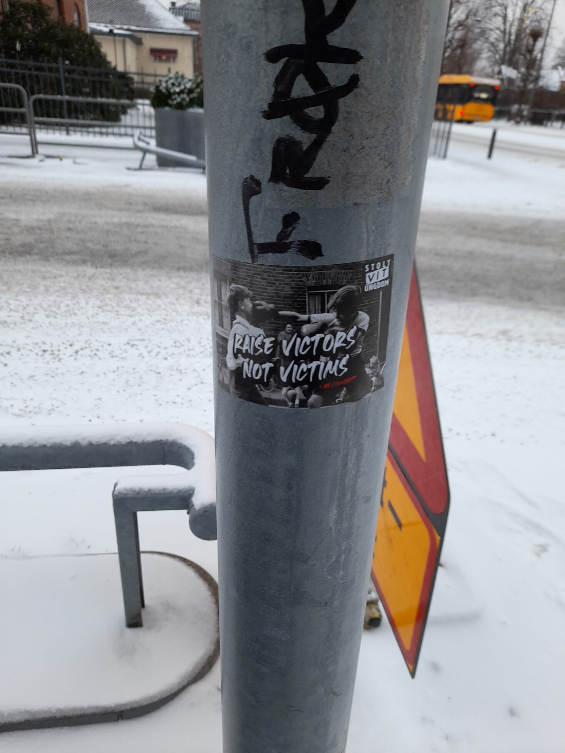 Klistermärken i Karlstad 2 januari var Näste 5 ute i vinterkylan och satte upp klistermärken i de centrala delarna av Karlstad.