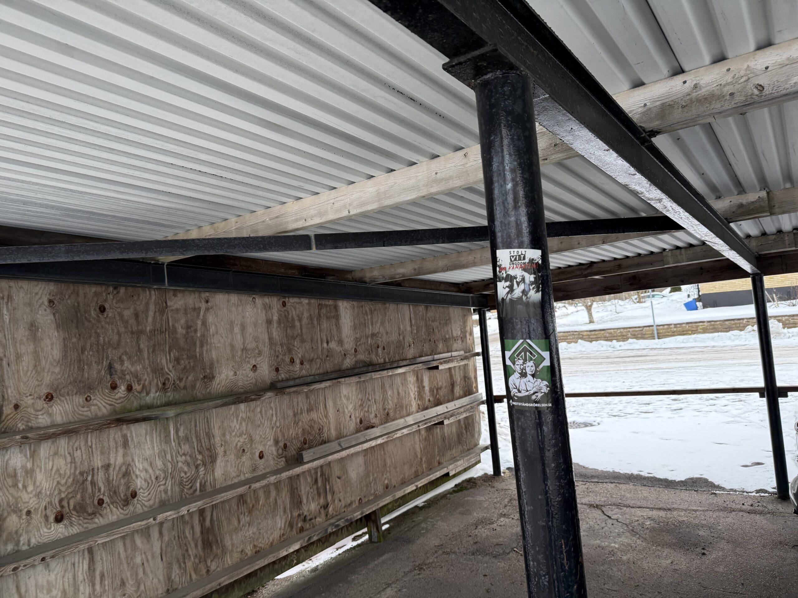 Klistermärken i Vetlanda Trots dåliga väderförhållanden kunde klistermärken sättas upp på flera platser där mycket folk rör sig.