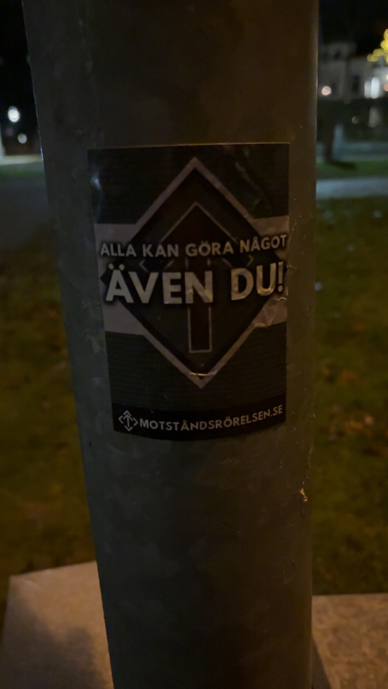 Lördag kväll 13 december sattes ett flertal klistermärken upp i Lidköping.
