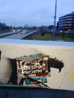 Många klistermärken sattes upp i centrum under lördagskvällen den 13 mars.