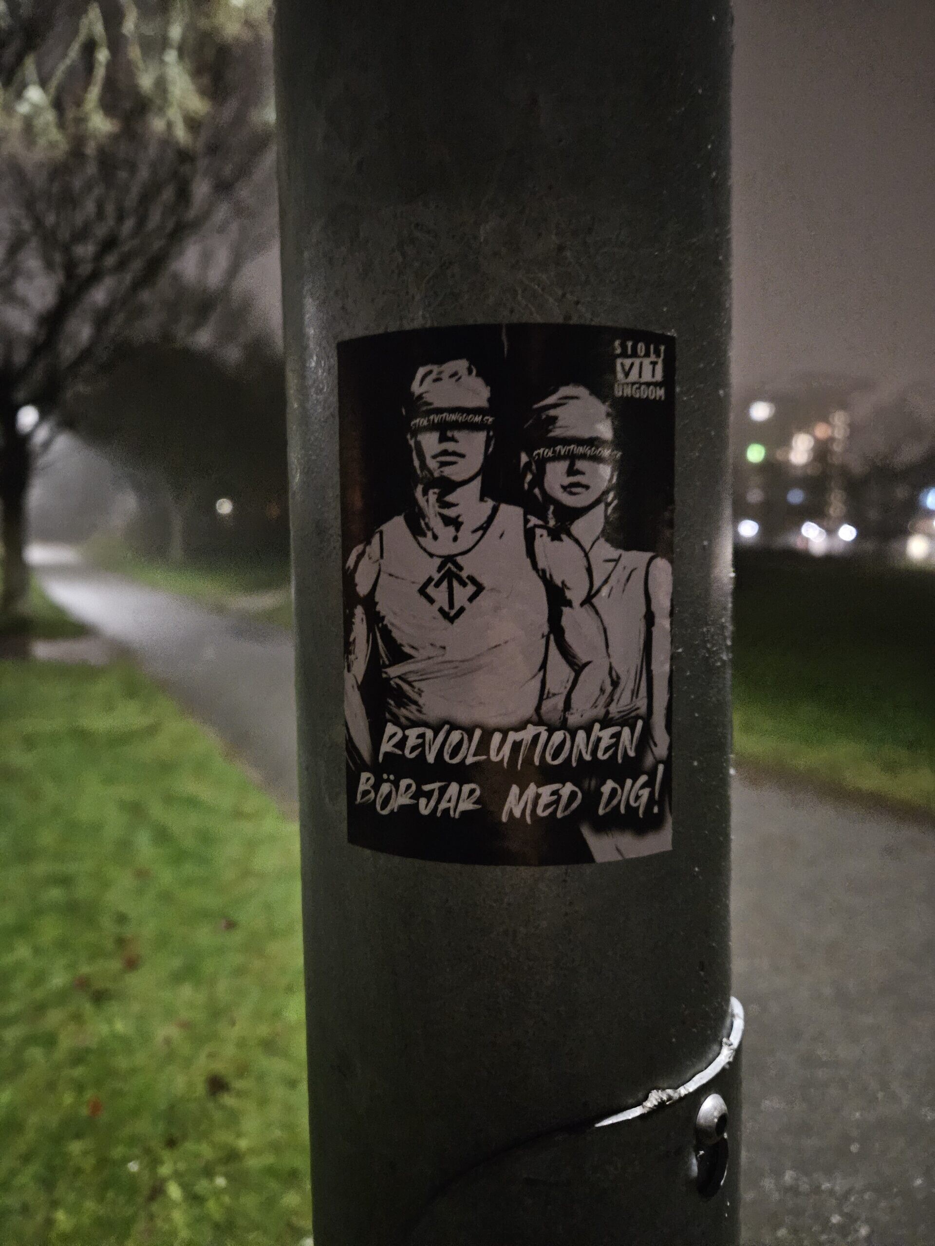 Torsdagen den 4 december sattes det upp klistermärken i Örebro.