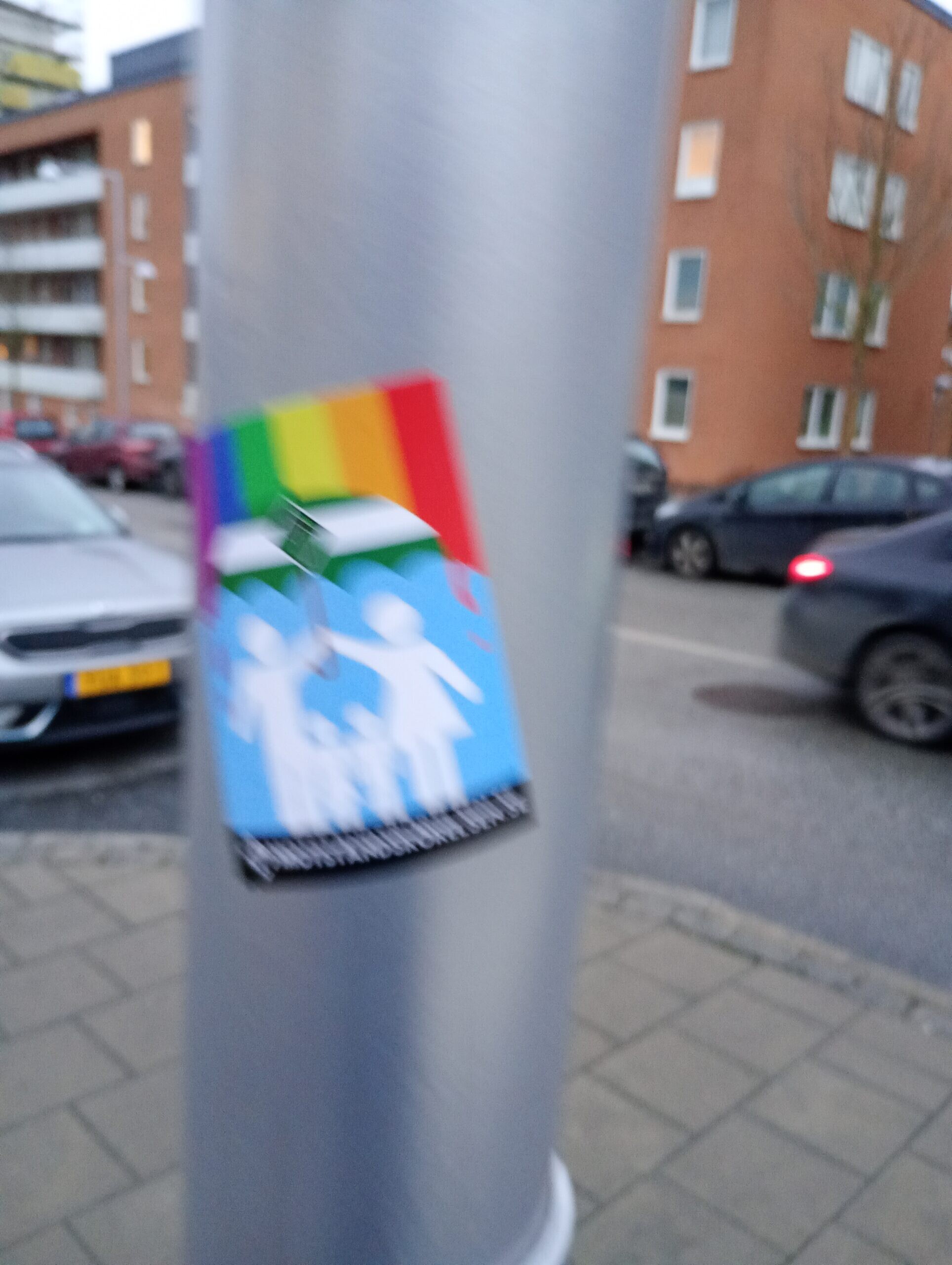 Den 19 december satte sympatisörer upp klistermärken i Rinkeby på platser där det trots allt fortfarande bor en del vita.